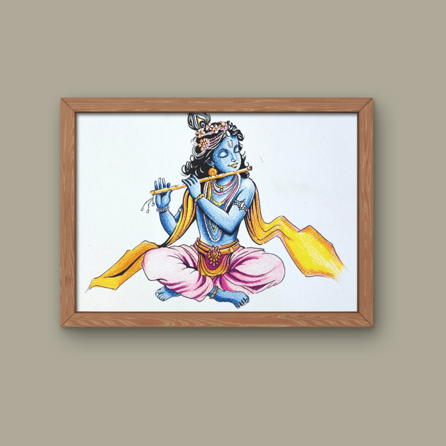 A solemn sound, Kanha's flute. Bring this very sacredness to your peaceful homes especially fitting for your living room, bedroom and particularly, prayer room.